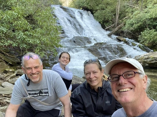 As spring turned to summer, the weather became too hot in Marietta, so we headed in the RV to the North Georgia Mountains for some cooler air. We took our RV to the Mountain View Campground in Hiawassee near Lake Chatuge. It was our first visit there. The small and quiet location had a nice view of the mountains and fun places to explore nearby. The friendly hosts told us about a secret waterfall just down the road. To get there, we put our Subaru to the test, crossing three streams and then walked up a steep hill to discover a lovely waterfall all to ourselves.