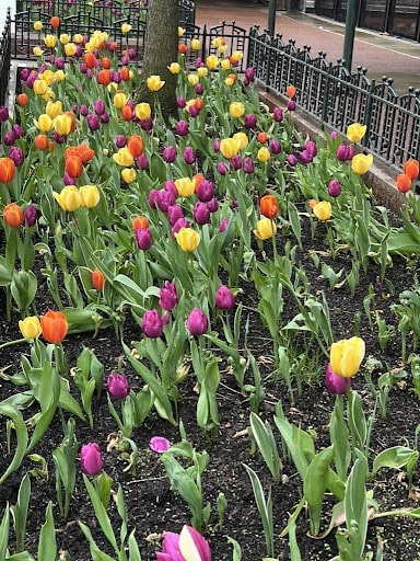 The other family trip was without the RV. At the end of the month, I flew to Chicago to meet my mom and sisters for a girl’s weekend. We had planned this trip for a while and weren’t sure what type of weather we would see there in April. We were lucky that we saw the sun and it was mild. Much to my surprise, there were blooms all around the city. So many streets had batches of flowers along the sidewalks and in the traffic medians.