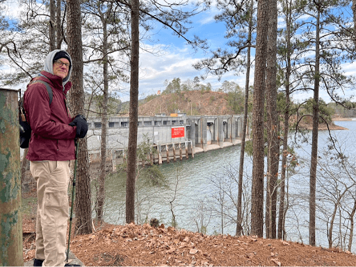 There is another area that we explored further this winter. It’s about an hour north of Marietta, and we’ve enjoyed it before. Near Cartersville, GA, there are multiple parklands, all very close together but separated by water.  On one side of the water, you have Etowah Park, run by the Army Corps of Engineers, that includes a beautifully wooded disc golf course. Across the river, you have the Allatoona Lake Visitor Center, with a great overlook providing views of two nearby parks.  Red Top Mountain State Park includes a marina, and Gatewood Park (of Bartow County) is where we frequently camp and Jason plays disc golf.